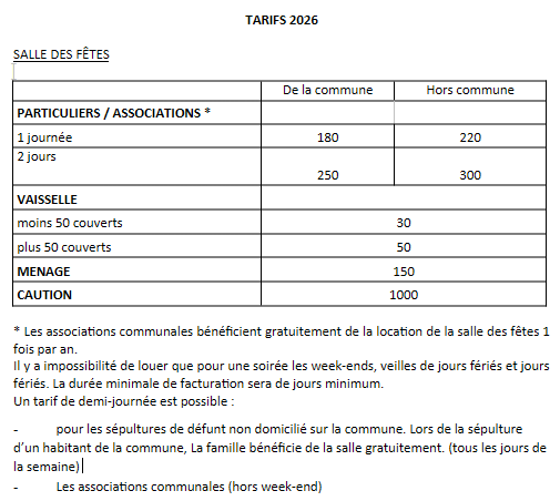 Pour tous renseignements ou réservations, s’adresser au secrétariat de Mairie (05 49 04 03 87mairie@surin79.fr)